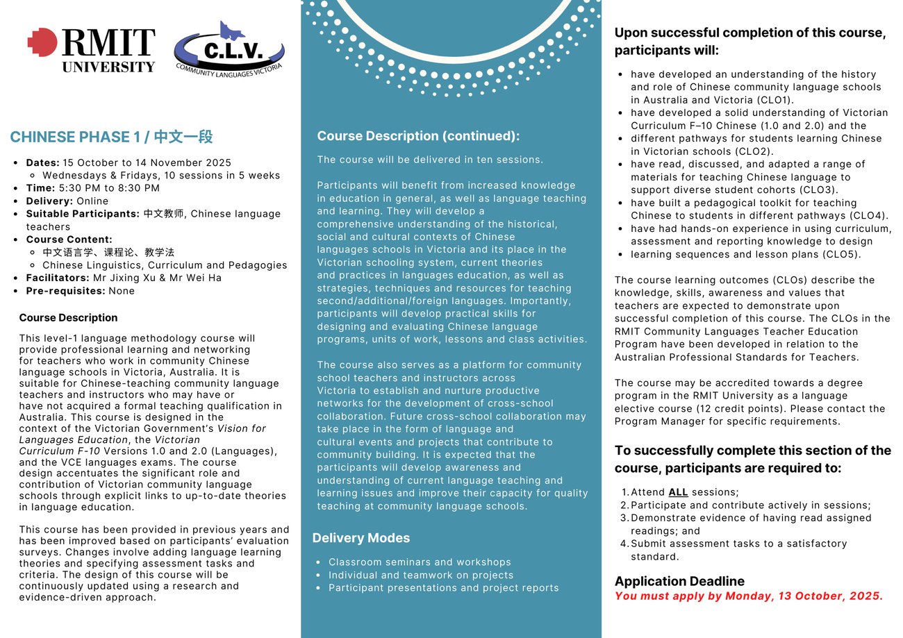 These courses provide valuable professional development opportunities for teachers across Chinese, Vietnamese, and Mixed Languages.